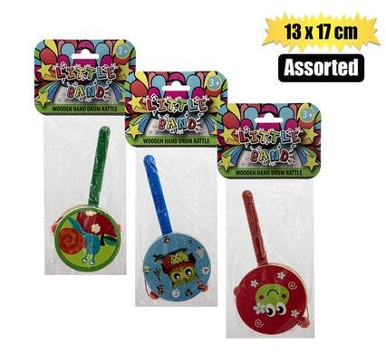 Musical wood hand drum rattle 13x17cm